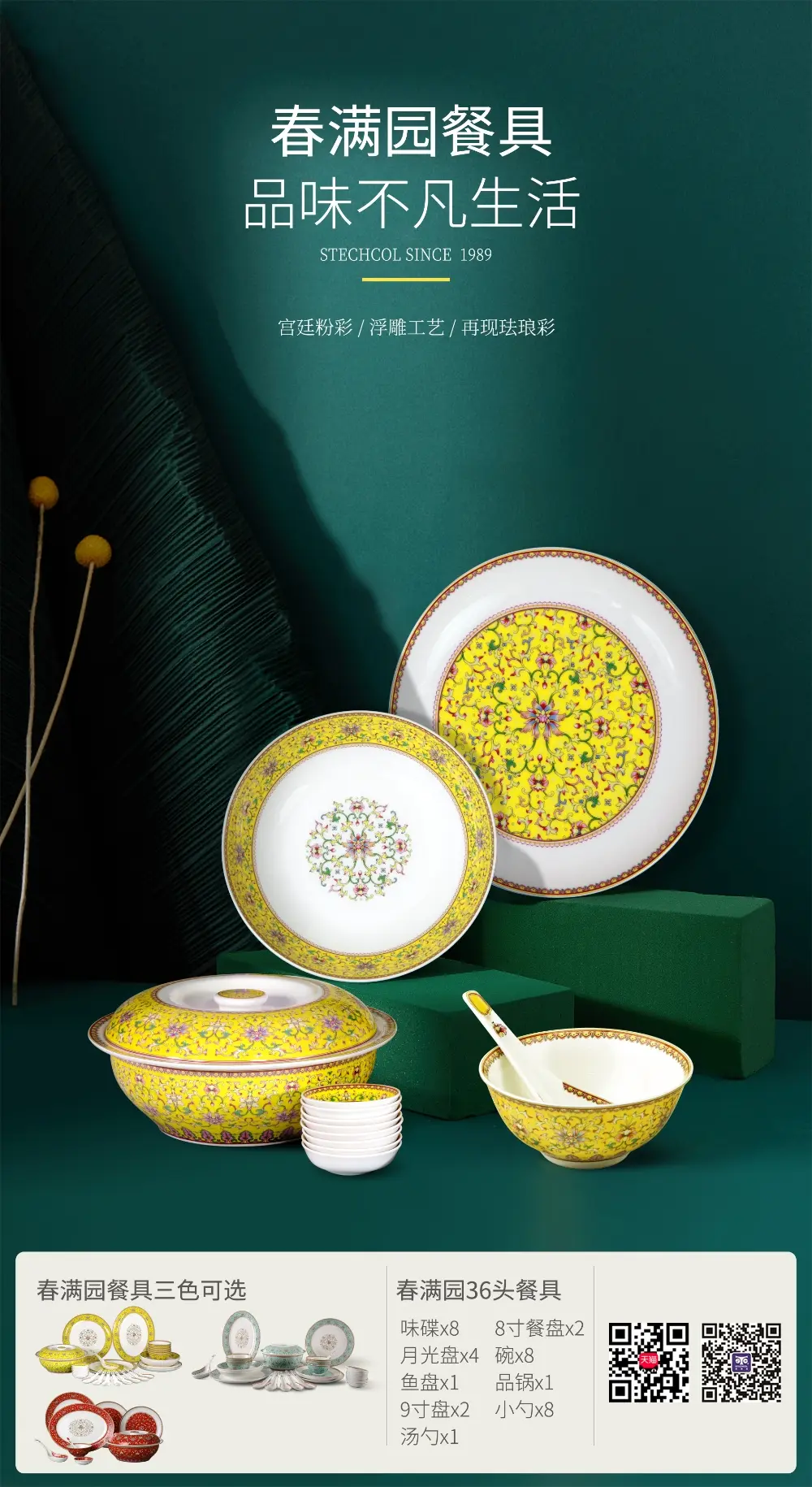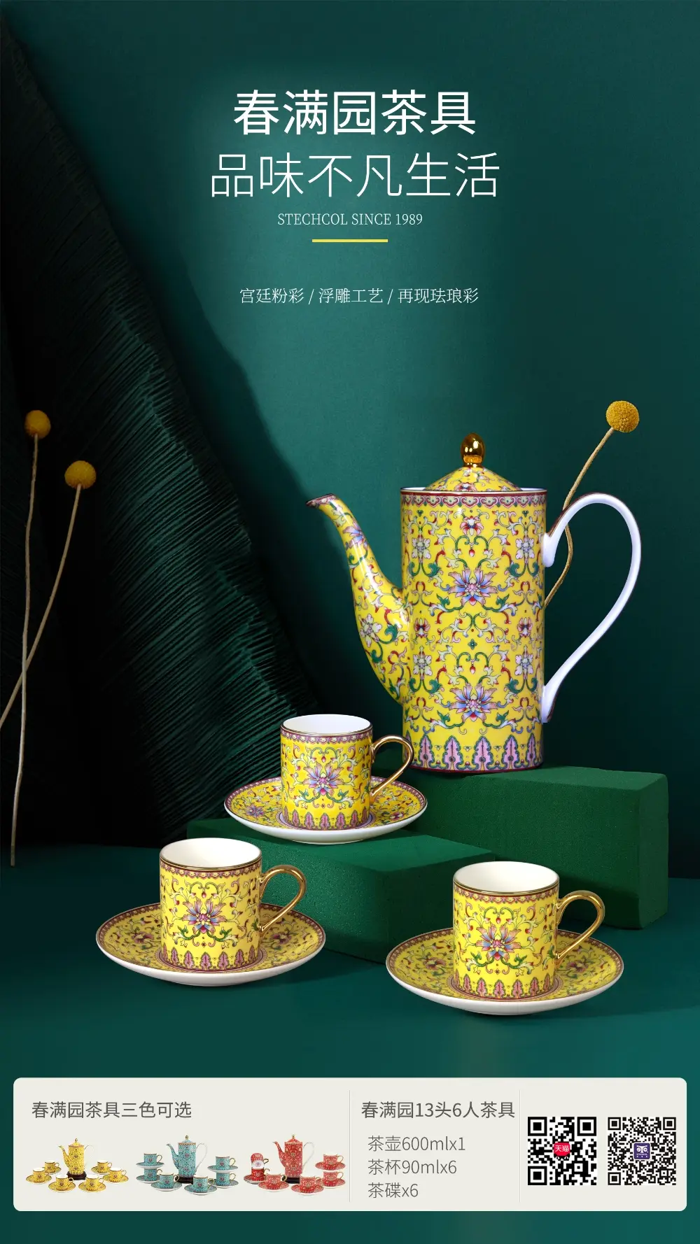 《春色满园》以清宫慈禧太后寿宴瓷器为蓝本,以缠枝莲纹挥洒出委婉多姿、生生不息的意韵,寓意吉祥永恒。
